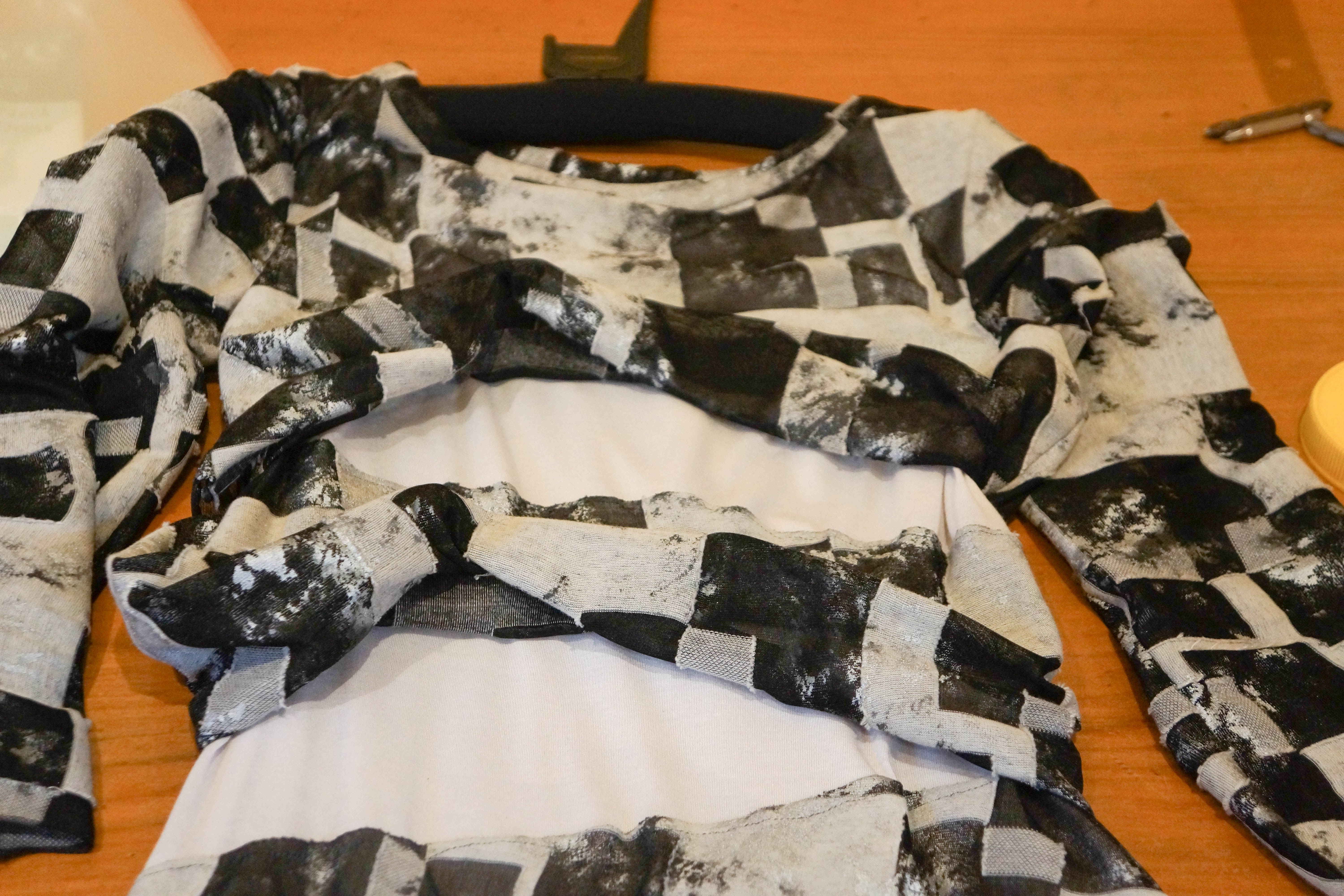 This time I used different fabric for the underbody – a really soft grey jersey that came from Global Fabrics in Dunedin and which was also languishing in my cupboard. This worked fairly well, but the underbody is stretchier than the shingles, which is one of the reasons I think the dress looks a bit tight.