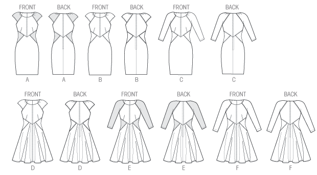 First cab off the rank is Vogue 8902, an interesting pattern with sufficient pieces to make me feel as though I was breaking the mould. Here is a schematic of the many versions of this pattern (which I think shows all the sections much better than a photograph would).