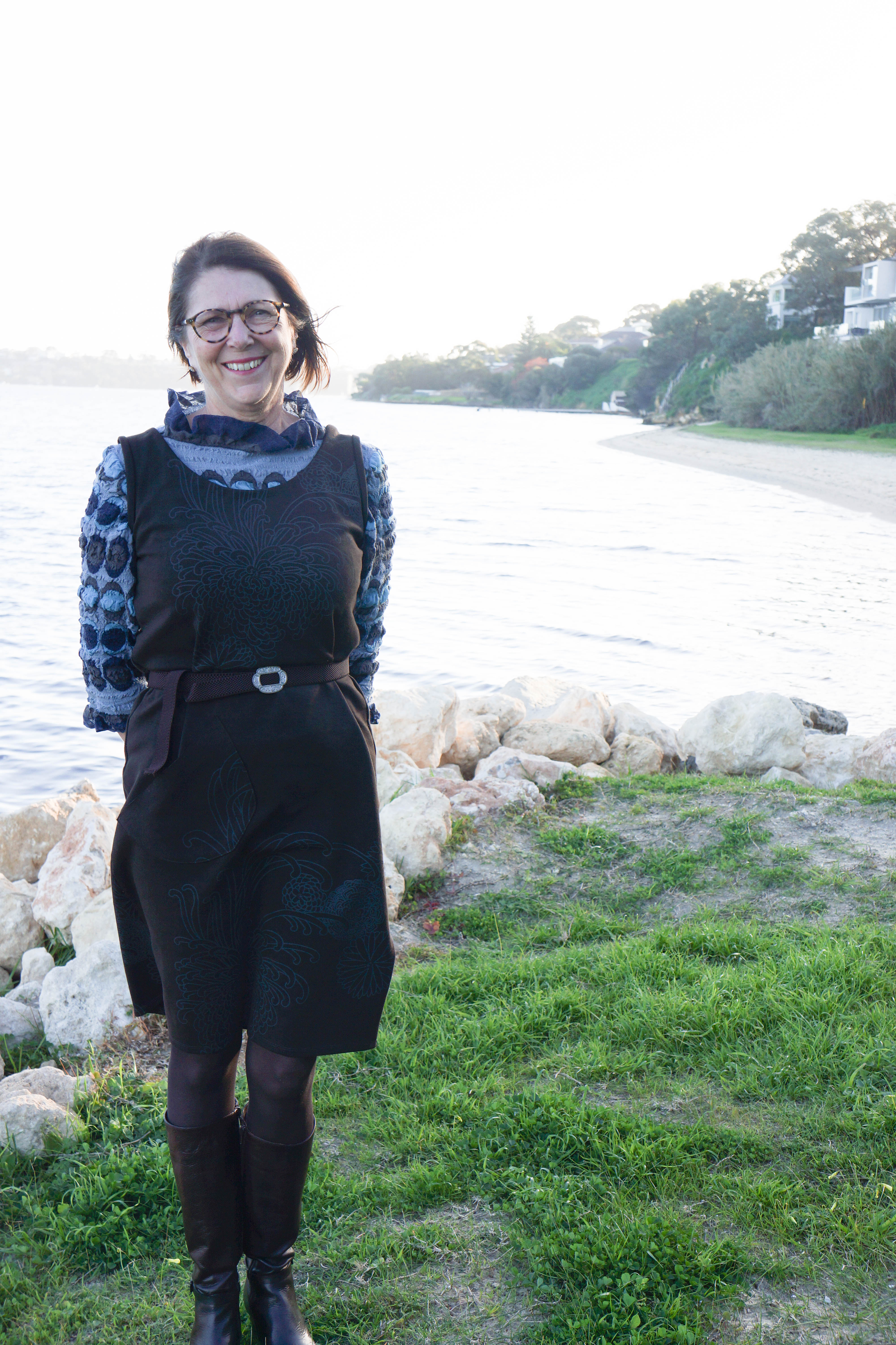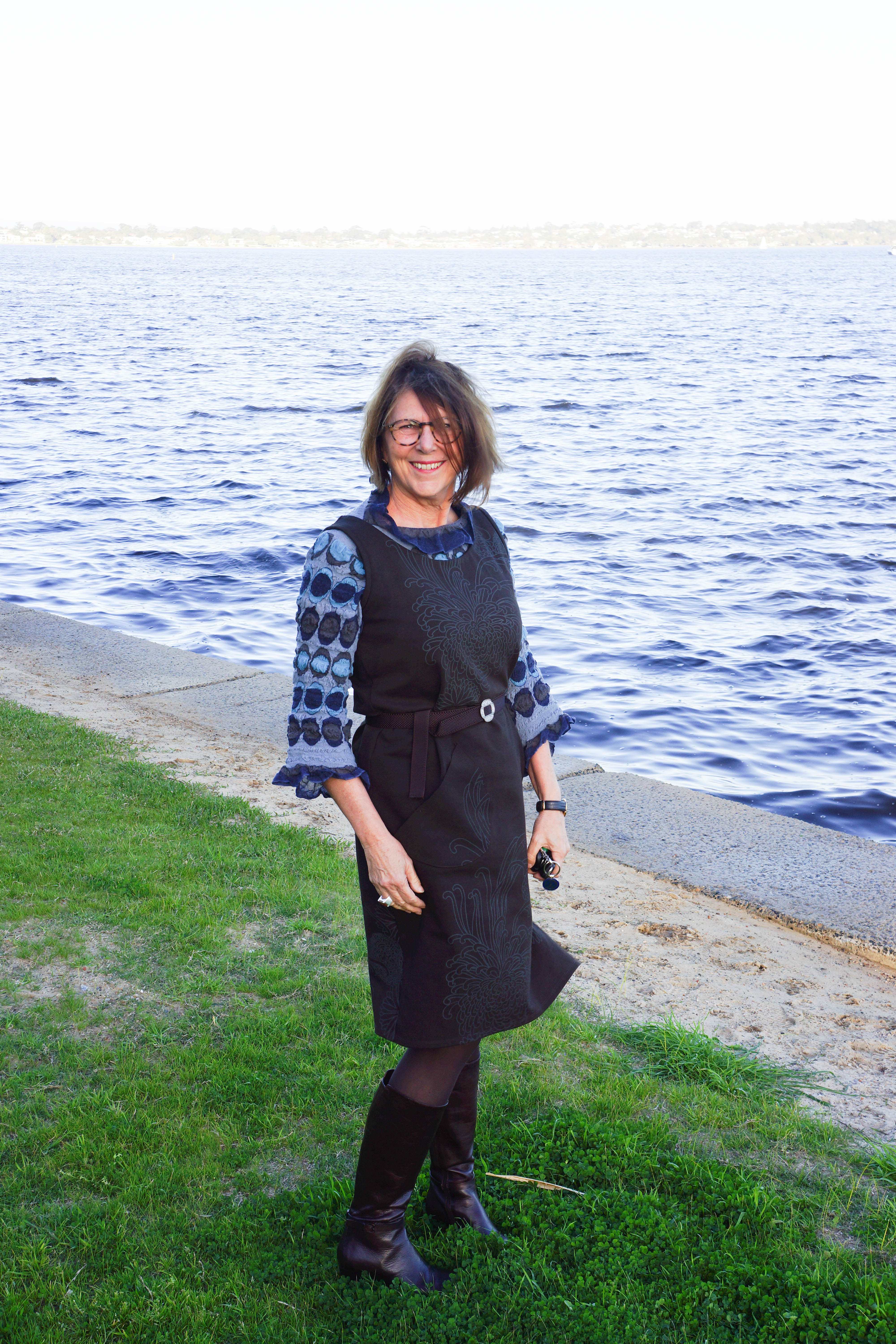 This looks great on you Sue, the colours are very flattering and perhaps you could wear a light long sleeved ‘skivvy’ underneath to make it more winter proof. Such a great transformation for a length of beautiful material – think of what you can create for summer with those big scarves and the trendy floaty fashions!