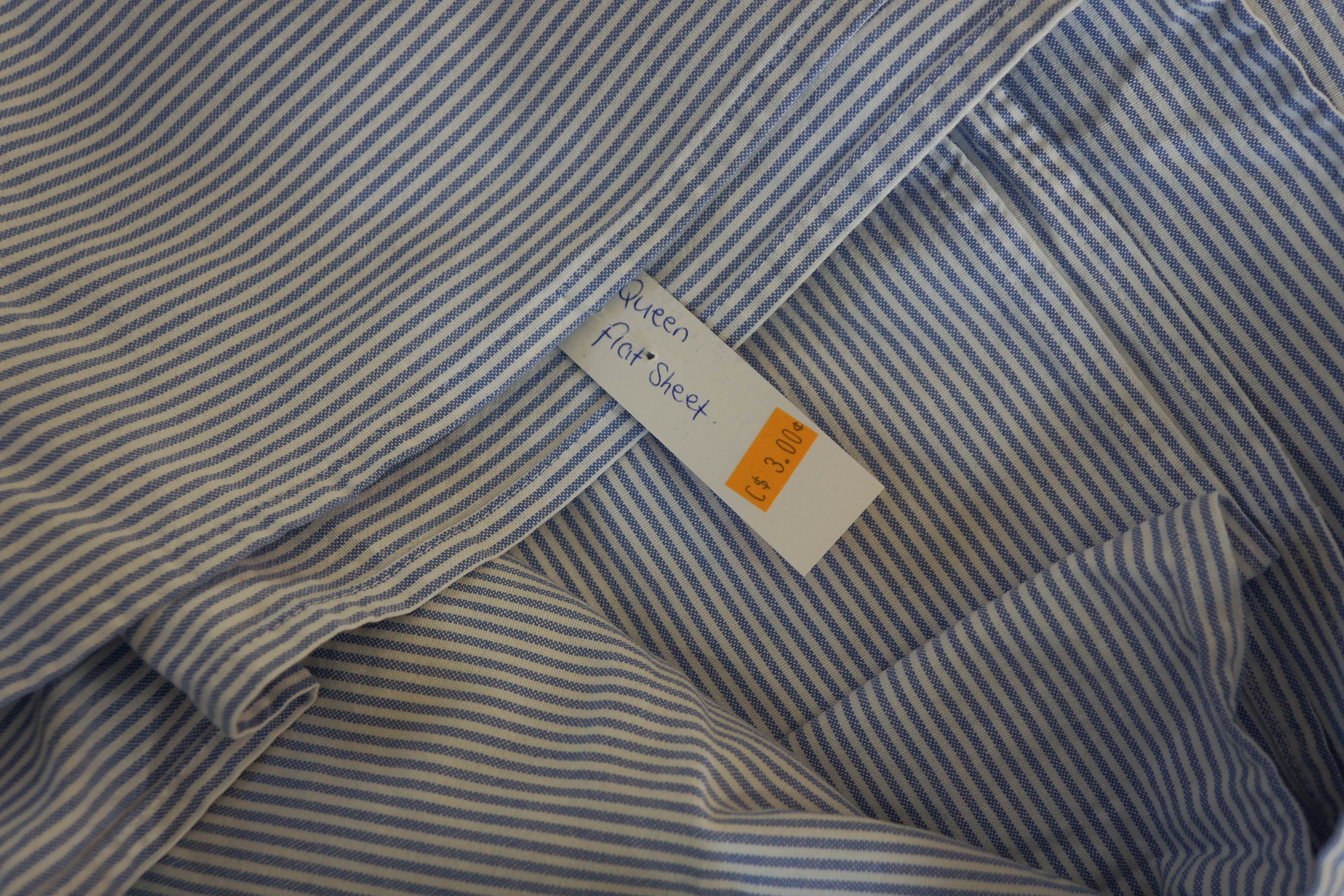 I have managed to make two Bellinis. Sally from Capital Chic Patterns used a thrifted sheet for her example in the sewalong, and, being the suggestible sort, I found this 100% Sheridan cotton sheet in an op shop in Hobart, so took some of it for a chevron striped Bellini.